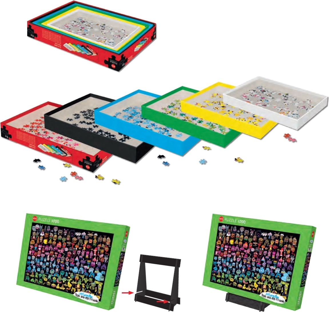 In de set zit ook een praktische standaard voor de voorbeeldafbeelding (de doos), zodat je het motief steeds in het zicht hebt en het leggen vlotter gaat. De set is ontworpen om stabiel, overzichtelijk en compact te zijn – een ideale hulp voor thuis en onderweg.