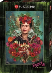 Stijlvolle puzzel met het FRIDA KAHLO-motief die elke kunst- en puzzelliefhebber zal bekoren. Dankzij de 500 kwaliteitsstukjes biedt hij een gebalanceerde uitdaging voor zowel beginners als gevorderden. Na het leggen ontstaat een decoratief beeld met een afmeting van ca. 35 × 50 cm, perfect om in te lijsten.