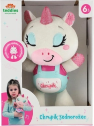 De schattige slaaphulp eenhoorn Chrupík combineert zacht pluche met rustgevend licht en zachte melodieën om kinderen te helpen rustig in slaap te vallen. Dankzij de batterijvoeding is hij ideaal voor in het ledikant, in de kinderwagen en onderweg, en geschikt vanaf 6 maanden.