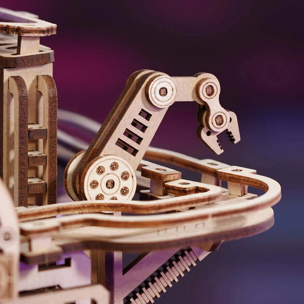 Het model combineert hout, metaal en plastic voor betrouwbare mechanische werking en een dynamische uitstraling. De set is ideaal voor gezellige momenten met familie en vrienden en ontwikkelt fijne motoriek, logisch denken en geduld.