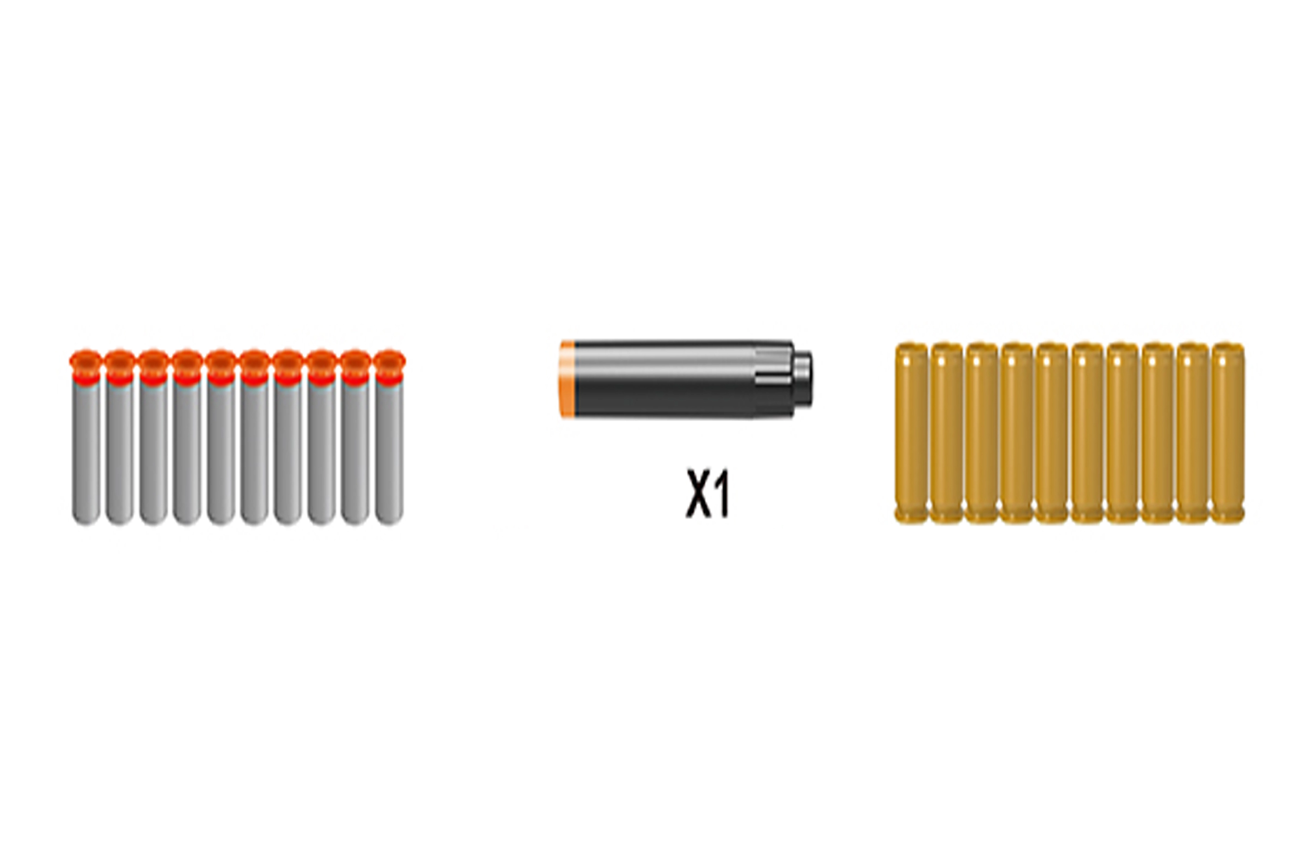 - Rijke uitrusting: 10 patronen en 10 foamkogels