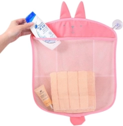 Praktische hangende badkamerorganizer houdt al het kinderspeelgoed overzichtelijk op één plek. Dankzij het gaasmateriaal droogt hij snel, voorkomt schimmel- en geurtvorming en het vrolijke dierenmotief motiveert kinderen om op te ruimen. Montage is eenvoudig met twee zuignappen op een glad oppervlak.