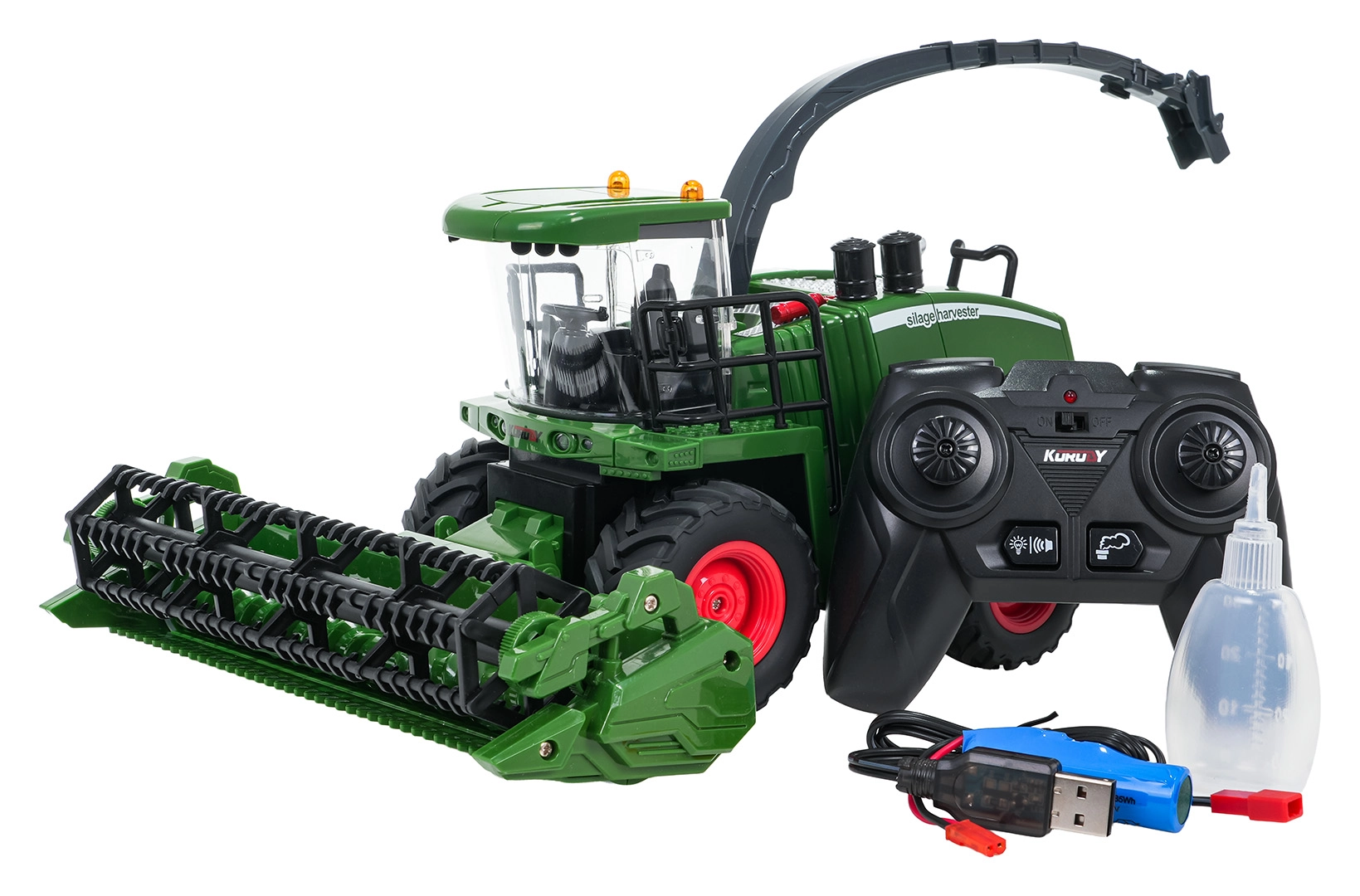 Deze gedetailleerd uitgewerkte, leuke combine brengt kinderen authentieke landbouwactie. Grote rubberen wielen zorgen voor goede grip, de maaikorf draait automatisch tijdens het rijden en de losarm kan handmatig 360° worden gedraaid. LED-lampen op de cabine en vooraan, evenals realistische geluiden (motor, achteruitrijsignaal) kunnen gemakkelijk via de afstandsbediening worden in- en uitgeschakeld.