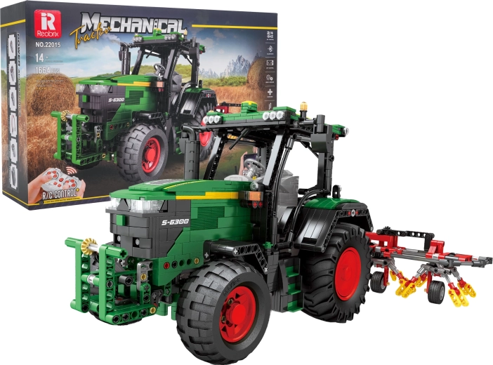Bouw een realistische groene tractor van 1664 onderdelen en geniet van rijden met afstandsbediening. Het model biedt dubbele bediening (2,4 GHz controller + mobiele app), krachtige motoren, voorste LED-lampen en functionele landbouwaccessoires met heffen en kantelen. Ideaal voor liefhebbers van technische bouwsets vanaf 14 jaar.
