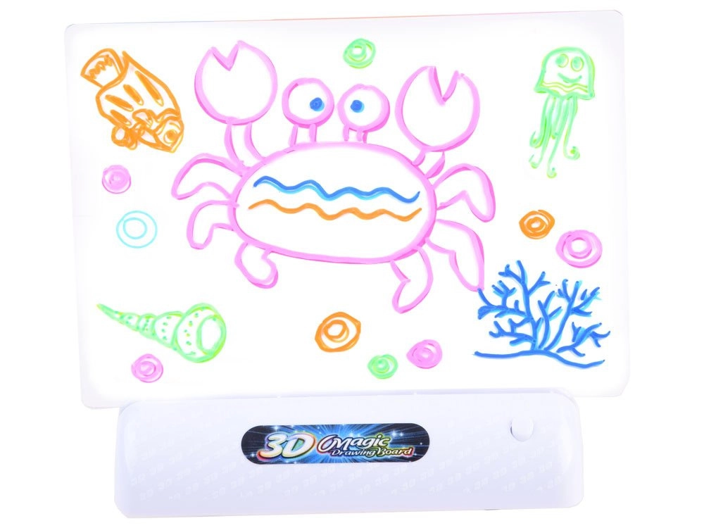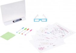 Magisch 3D tekenbord met LED-achtergrondverlichting verandert kindercreaties in neonafbeeldingen met 3D-effect. Dankzij de fluorescerende stiften, 3D-bril en de herbruikbare transparante plaat is het een geweldige keuze voor de ontwikkeling van creativiteit, fantasie en fijne motoriek bij kinderen vanaf 3 jaar.