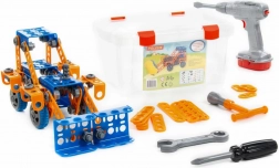 De constructieset Wynalazca bevat 142 onderdelen in een praktische klapbox met sluitingen. Dankzij de meegeleverde gereedschappen – accuschroevendraaier, inbussleutel, schroevendraaier met verwisselbare bits en platte sleutel – bouwen kinderen gemakkelijk een windmolen/molen of verschillende voertuigen.
