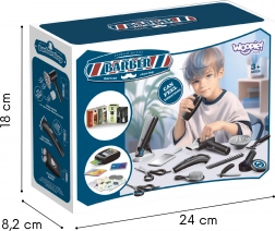De WOOPIE BARBER SET voor kinderen verandert elke kamer in een kleine schoonheidssalon. De functionele föhn met luchtstroom en de vibrerende apparaten geven het spel authenticiteit, terwijl de uitgebreide accessoires kinderen laten spelen als kapper én barbier. Een uitstekende keuze voor kinderen vanaf 3 jaar die van creatief rollenspel houden.