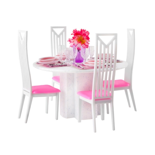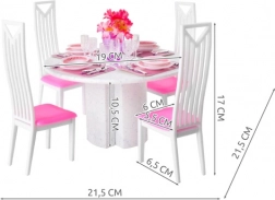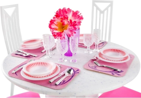 Deze elegante eetkamer‑set voor poppen brengt realistisch tafelen in miniatuur – van borden en bestek tot glazen en een bloemenversiering. Kinderen dekken eenvoudig een tafel voor vier poppen en verzinnen eindeloos veel verhaaltjes. De lichte en stabiele constructie van duurzaam plastic zorgt voor een lange levensduur, ook bij dagelijks spelen.
