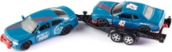 Met deze gedetailleerde 1:55 set van Siku beleef je de spanning van de races al bij aankomst in de pitstraat. De DODGE Charger als trekauto vervoert de DODGE Challenger SRT veilig op de aanhanger met neerklapbare ramp, waardoor laden en lossen kinderspel is. Metalen en kunststof onderdelen garanderen stabiliteit, een lange levensduur en een geweldige uitstraling.