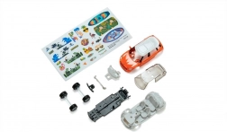 Bijgevoegd is een rijk stickervel met zomerthema (palmen, zon, meeuwen, surfers, waterspetters) waarmee je een originele stijl creëert – van een tropische look tot speelse patronen. Na voltooiing is het model klaar om mee te spelen, of het wordt een aantrekkelijke blikvanger op de kinderkamerplank.