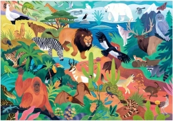 Duik in de wereld van dieren – van majestueuze leeuwen tot speelse kangoeroes. De gelegde puzzel met afmetingen 58 × 41 cm geeft kinderen plezier in ontdekken en ondersteunt tegelijkertijd concentratie, geduld en ruimtelijk inzicht. De praktische doos met een afbeelding van het voltooide motief is ideaal voor het veilig opbergen van alle stukjes.