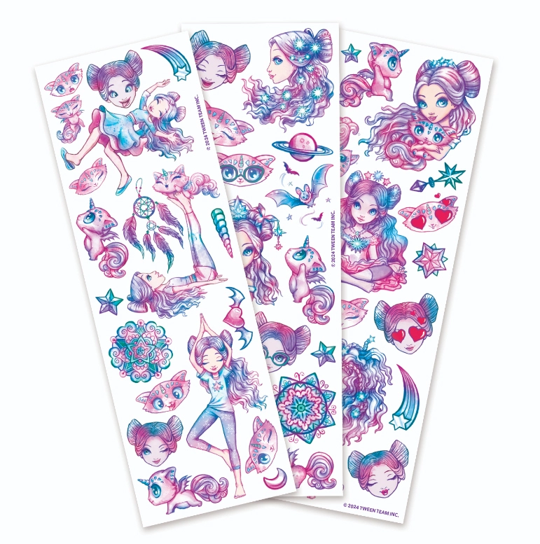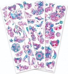 Stap binnen in de magische wereld van NEBULOUS STARS met prachtig geïllustreerde tijdelijke tatoeages. De set biedt 50 verfijnde motieven geïnspireerd op de zee – van zeemeerminnen en schelpen tot glinsterende golven en koraaldetails. Dankzij de levendige kleuren en zorgvuldige afwerking zien de tatoeages er geweldig uit op de huid en zorgen ze voor vele vrolijke momenten vol creativiteit.