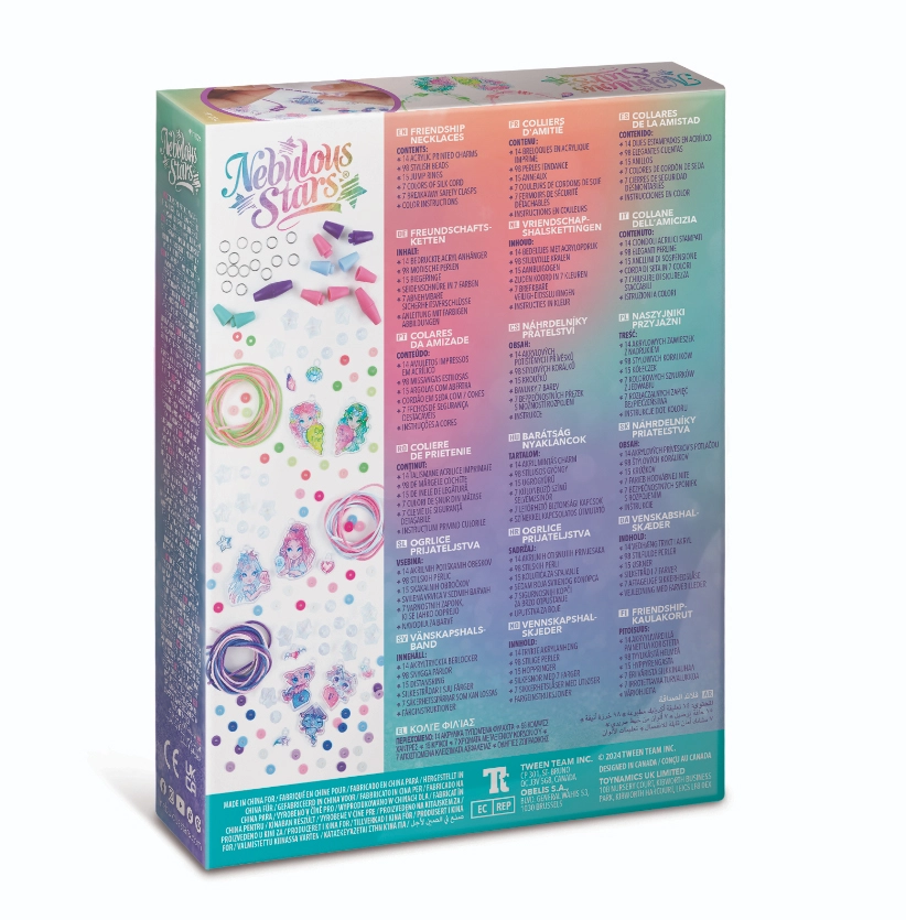 De creatieve set NEBULOUS STARS voor jonge makers van vriendschap brengt alles wat je nodig hebt om originele sieraden te maken. Maak samen met je vriendinnen unieke kettingen met glinsterende acrylhangers, gekleurde kralen en zijden koordjes. De doos bevat een rijke uitrusting voor wel 7 kettingen en een eenvoudige, kleurrijke handleiding voor een snelle start.