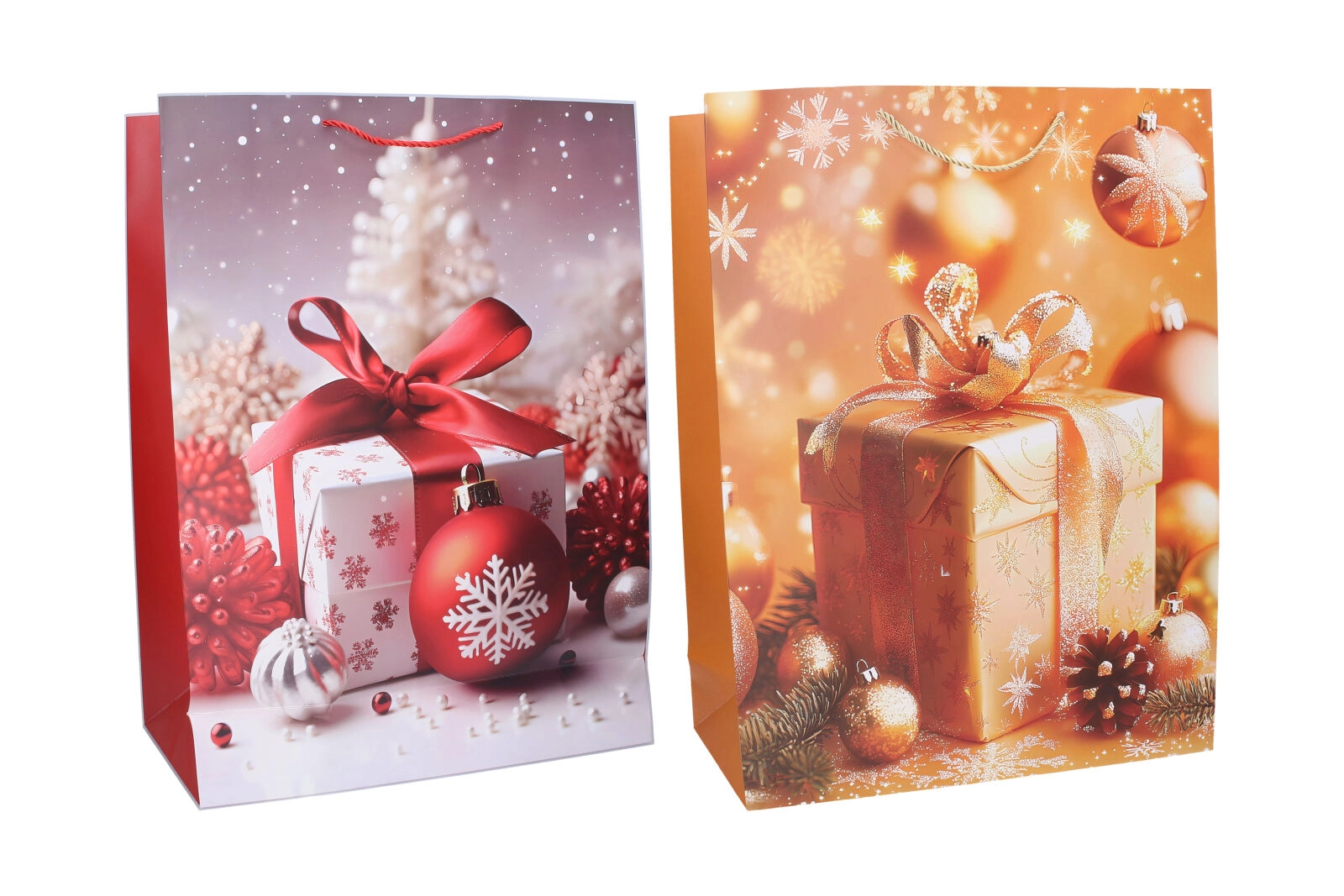 Praktische en stijlvolle cadeautas in XXL-formaat voor grote geschenken. Ideaal voor feestelijk inpakken dankzij het kerstmotief, de ruime afmetingen 72 × 50 × 18 cm en de stevige uitvoering. Verkrijgbaar in 2 kleurvarianten.