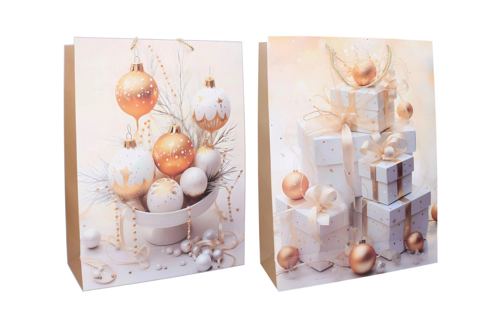 Stijlvolle cadeautas in XL-formaat, ideaal voor grotere kerstcadeaus. Biedt een stevige uitvoering, voldoende ruimte en een feestelijk design. Kies uit 2 varianten met een kerstmotief met afmetingen 40 × 55 × 15 cm.