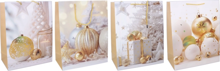 Stijlvolle kerstcadeautas in maat S die elke ontvanger zal verrassen. Dankzij de afmetingen 18 × 23 × 10 cm is hij ideaal voor kleinere cadeaus, cosmetica of kleine decoraties. Biedt hoogwaardige afwerking, stevig handvat voor comfortabel dragen en feestelijk design in 4 varianten.
