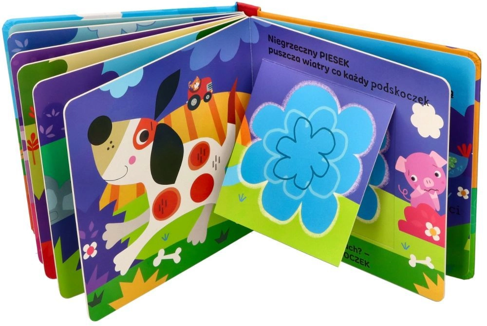 - 6 stevige pagina’s met een eenvoudig en vrolijk verhaal voor kleine kinderen