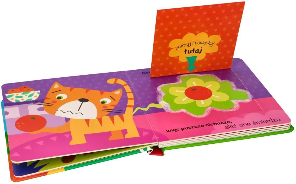 Een vrolijk kinderboek dat lachen, nieuwe woordjes leren en speels omgaan met “taboe”-onderwerpen combineert. Bevat 6 stevige pagina’s met een vrolijk verhaal over een gezin en geurflapjes die je kunt openen, waar kinderen keer op keer nieuwsgierig naar zijn.