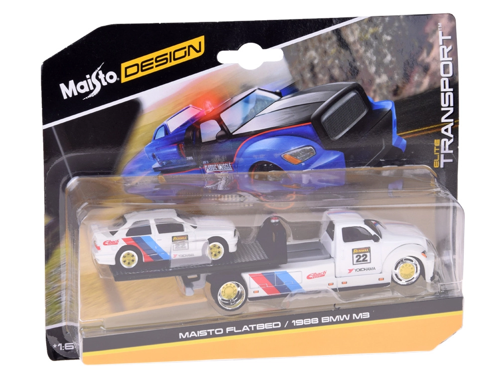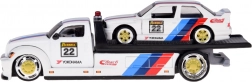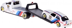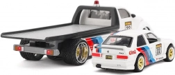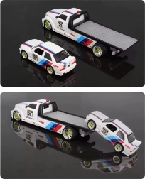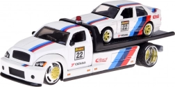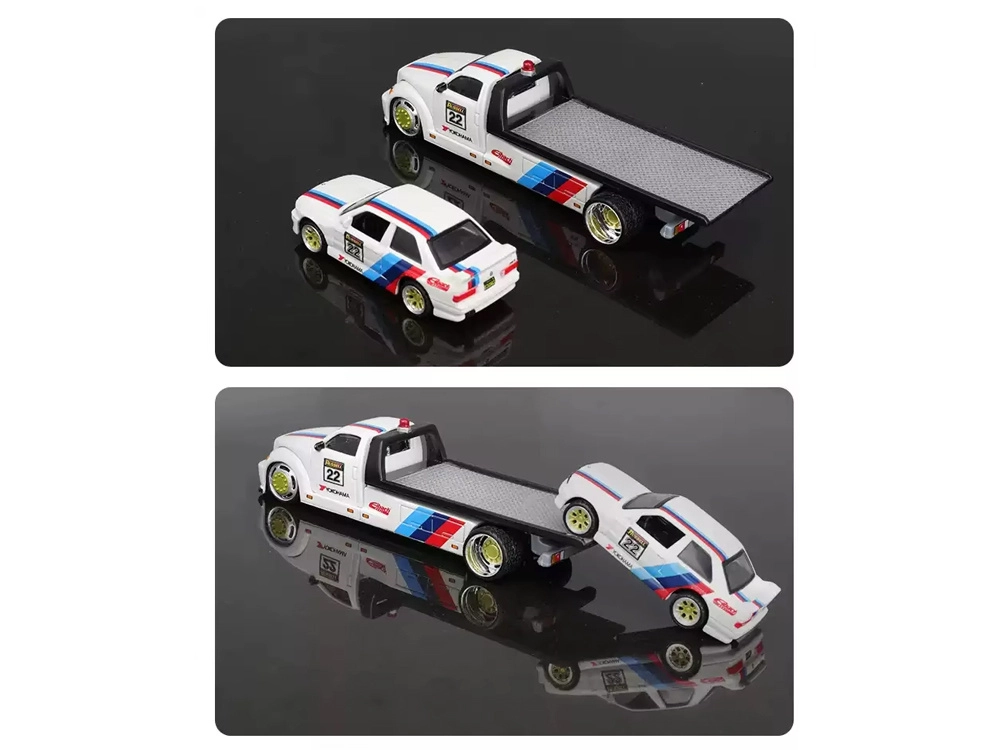 Deze gelicentieerde set die-cast modellen op schaal 1:64 combineert een takelwagen met laadplateau en de cultklassieker BMW M3 1988. De uniforme witte kleurstelling met racebanen, startnummers en sponsorlogo’s benadrukt het sportieve karakter en ziet er aantrekkelijk uit in de vitrine én tijdens het spelen.