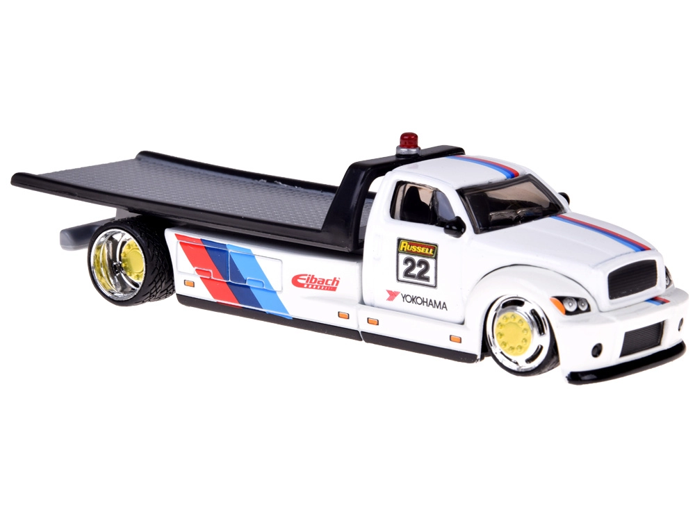 De carrosserieën zijn gemaakt van metaal, de onderstellen van kunststof – een combinatie die zorgt voor duurzaamheid, laag gewicht en natuurgetrouwe details. De functionele ramp van de takelwagen maakt comfortabel laden en vervoeren van de raceauto mogelijk, zodat de set tal van speelscenario’s biedt.