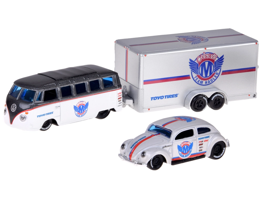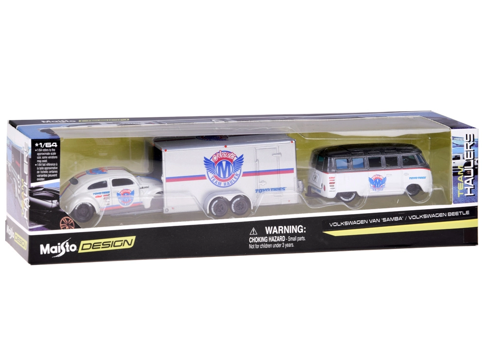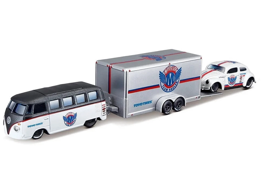 Ontdek het tijdloze design van klassieke auto’s in de precieze afwerking van Maisto. De set in een elegante wit-zilveren combinatie biedt metalen carrosserieën, kunststof onderstellen voor licht gewicht en soepel rijden op diverse ondergronden dankzij rubberen wielen. De Beetle past comfortabel op de meegeleverde aanhanger, zodat je kunt genieten van zowel authentiek transport als een indrukwekkende presentatie in de collectie.