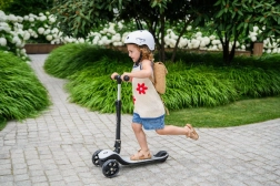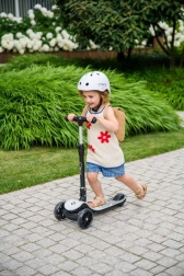 MoMi SAN is de ideale eerste step voor jonge rijders. Drie wielen zorgen voor uitstekende stabiliteit, terwijl het lage en brede deck veilig op- en afstappen mogelijk maakt. De LED-wielen zorgen voor plezier en verbeteren tegelijk de zichtbaarheid tijdens het rijden.