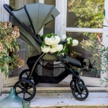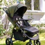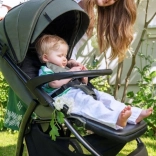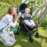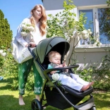 Grote wielen van EVA-schuim met vering op alle vier de wielen nemen stadsoneffenheden moeiteloos. De verstelbare rugleuning en beensteun maken comfortabel slapen en wakker rijden mogelijk. Inbegrepen is complete accessoires voor elk weertype – van muggennet en voetenzak tot regenhoes.