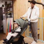 De lichte en wendbare sportkinderwagen MoMi Miya EVA in een elegante beige kleur biedt snel inklappen met één hand, grote EVA-wielen met vering en een uitgebreide set accessoires inbegrepen (bekerhouder, muggennet, voetenzak, regenhoes). Dankzij de 5-puntsgordels, voetrem en dubbele vergrendeling tegen onbedoeld inklappen zorgt hij voor een veilige en comfortabele rit vanaf de geboorte tot 22 kg.