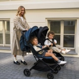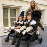 Inclusief praktische accessoires: rugzak, bekerhouder, muggennet en regenhoes. De mand met een draagvermogen van 2 kg biedt ruimte voor alles wat je tijdens een wandeling nodig hebt. Met de optionele set adapters kun je twee kinderwagens koppelen tot een tandem- of tweelingvariant – een geweldige oplossing voor een groeiend gezin.