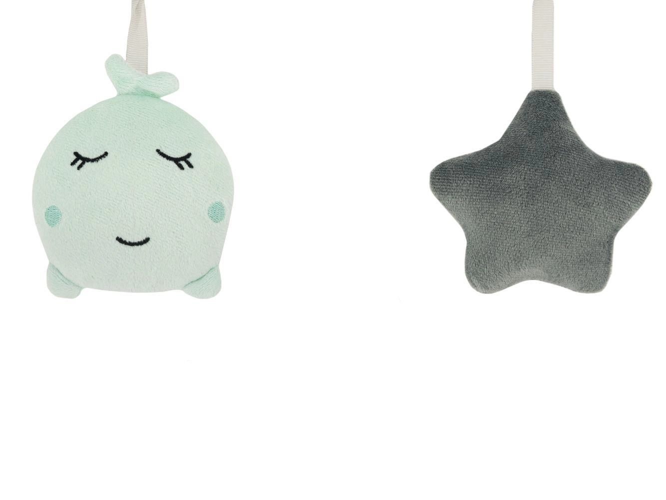 Twee hangende speeltjes stimuleren de zintuigen en de aangename melodieën helpen je baby te kalmeren en te vermaken.