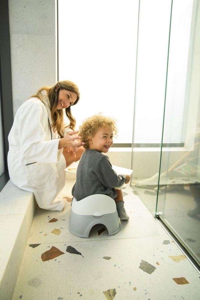 De stabiele, brede basis met anti-sliprand houdt het potje stevig op zijn plaats. De compacte en lichte constructie is gemakkelijk te dragen en op te bergen, ideaal voor de badkamer, kinderkamer en onderweg.