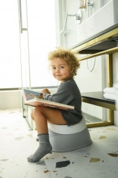 Het kinderpotje MoMi DITO in grijs biedt een ergonomische vorm, een comfortabele hoge rugleuning en een antislipbasis voor veilig en ontspannen zindelijkheidstraining. Dankzij de uitneembare inzet is schoonmaken snel en hygiënisch, terwijl de compacte afmetingen het plaatsen in elke badkamer vergemakkelijken.