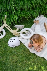 MoMi Noru tilt de eerste meters op de fiets naar een hoger niveau. Het unieke met-knop opklapbare frame maakt vervoer en opslag eenvoudig – van auto tot thuis, zonder gedoe. De lichte constructie van duurzaam nylon weegt slechts 3 kg, zodat ouders hem makkelijk met één hand dragen.