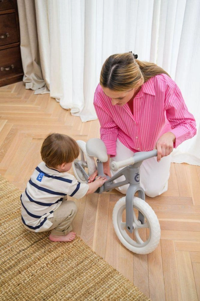 Dankzij het ruime verstelbereik van het zadel groeit de loopfiets met je kind mee. De onderhoudsvrije 12" EVA-wielen raken niet lek en bieden een stille, stabiele rit op de stoep en in huis. Voor extra veiligheid zijn er antislip handvatten en is er geen stuurvergrendeling voor natuurlijke controle zonder onverwachte blokkades.