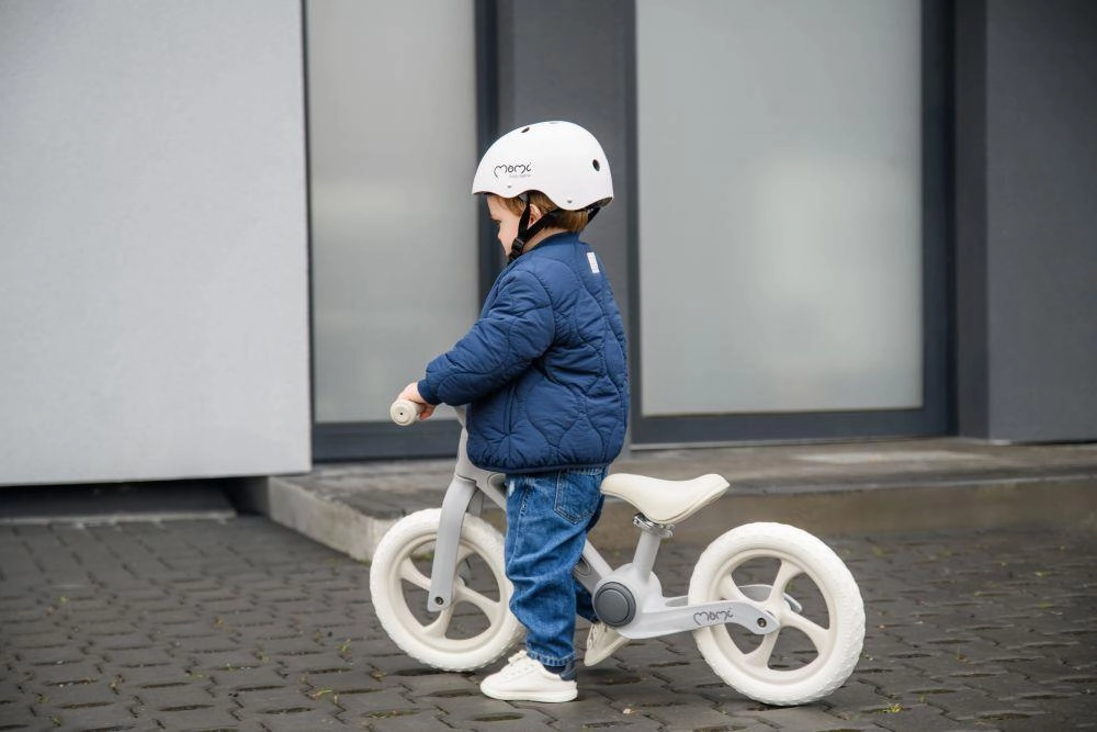 De lichte en praktische MoMi Noru loopfiets met knop-inklapmechanisme is ideaal voor kleine rijders vanaf 2 jaar. Biedt een laag gewicht, gereedschapsloze zadelhoogteverstelling en tubeless EVA-wielen van 12" voor comfortabel en veilig rijden. Dankzij het nylon frame en antislip handvatten leren kinderen met vertrouwen hun evenwicht, binnen en buiten.
