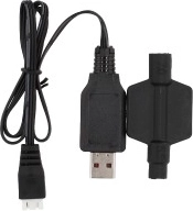 In de verpakking zitten twee 7,4 V 850 mAh Li‑ion-accu’s. Oplaadtijd ca. 1 uur, rijtijd 10–15 minuten per accu.