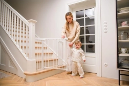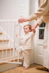 Het dubbele veiligheidssysteem voorkomt dat kinderen het hekje openen. De poort opent in beide richtingen en blijft bij 90° open voor een ongehinderde doorgang.