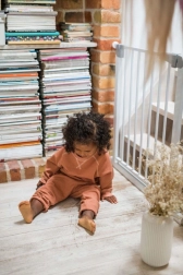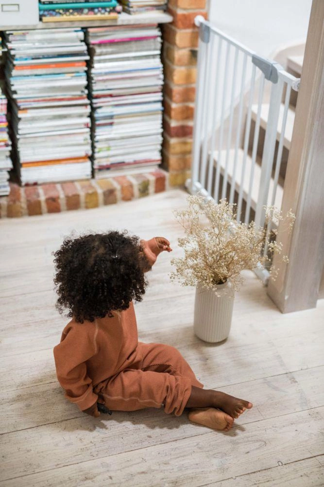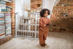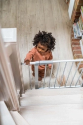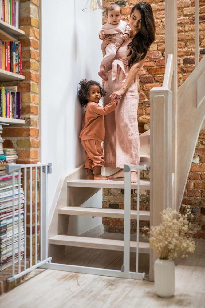 Voor maximale gemoedsrust voldoet het hekje aan de Europese norm EN 1930 en de eisen van EN71-2 en EN71-3. Bij 90° blijft het deurtje openstaan, wat het dragen van boodschappen of het manoeuvreren met een kinderwagen vergemakkelijkt. De strakke lijnen zonder scherpe randen en de duurzame constructie passen in moderne interieurs en bij trappen.