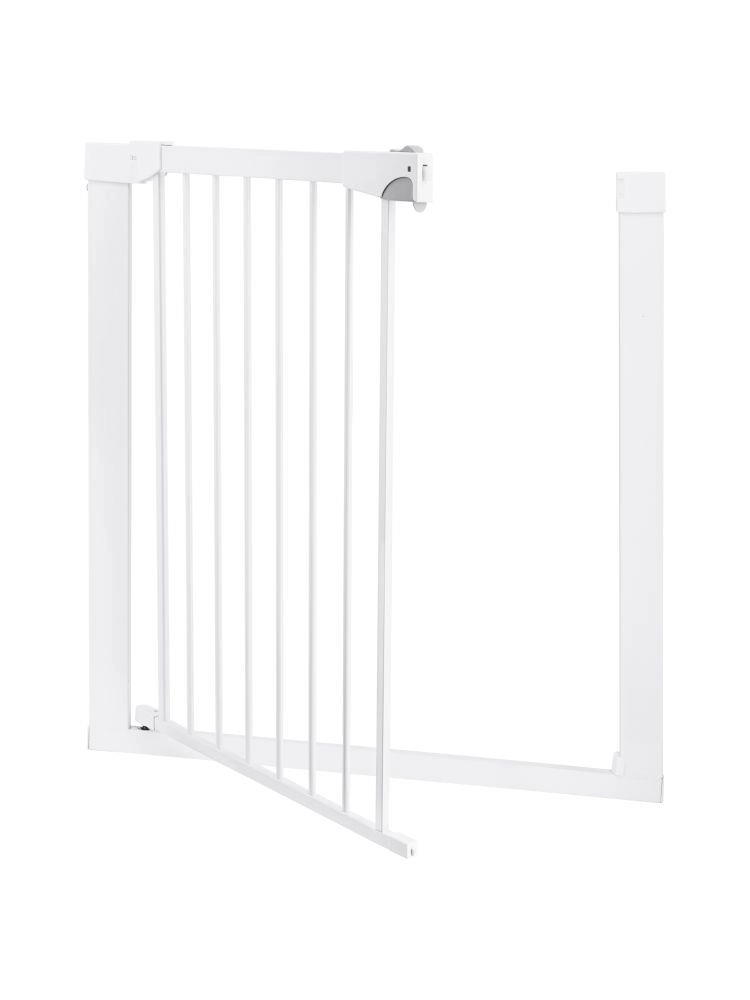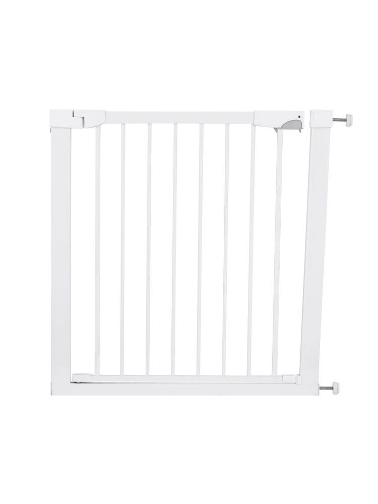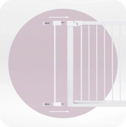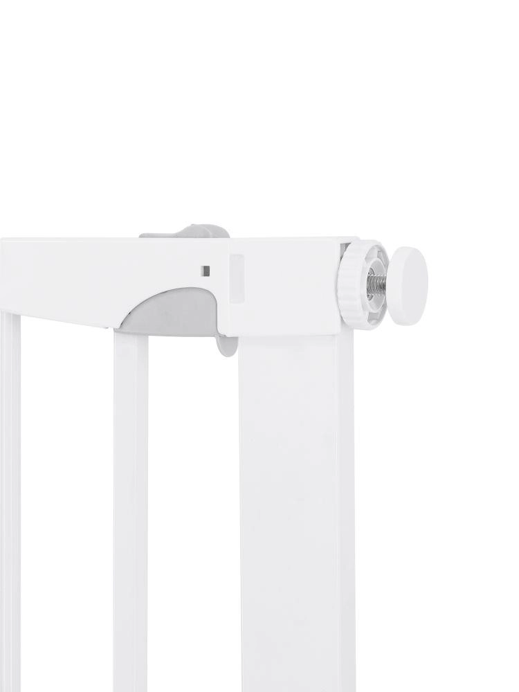MoMi PAXI Plus is een stevig metalen hekje in elegant wit, ontworpen voor snelle installatie zonder gereedschap. Dankzij de basisbreedte van 75–82 cm en twee verlengstukken (7 cm en 14 cm) sluit het doorgangen veilig af tot 103 cm. Tweerichtingsopening en een slimme vergrendeling verhogen het comfort en de veiligheid in het dagelijks gebruik.