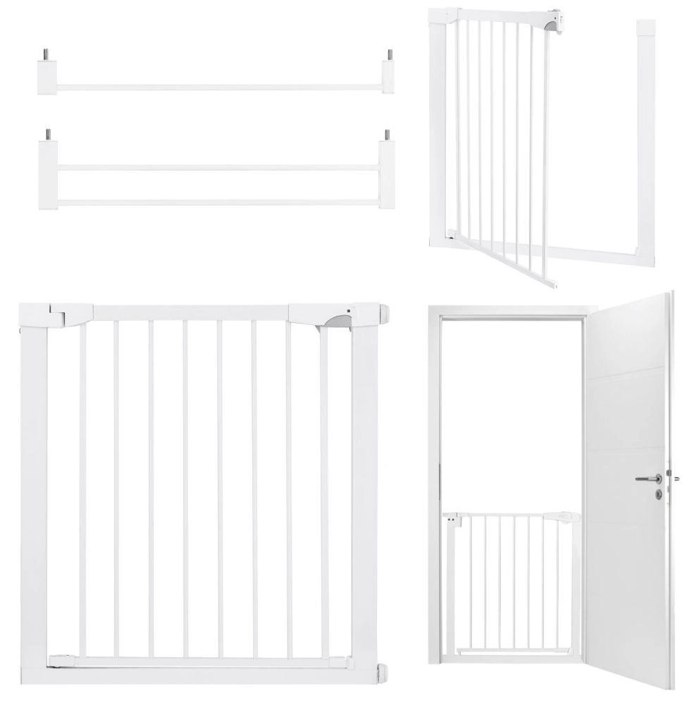 Het dubbele veiligheidsmechanisme voorkomt dat kinderen het openen. Het deurtje opent in beide richtingen en blijft bij 90° open voor een gemakkelijke doorgang.