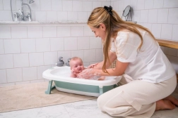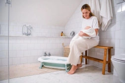 MoMi NATA is een slimme en compacte oplossing voor het dagelijks badderen van je baby. Het badje vouwt in een oogwenk plat, neemt bijna geen ruimte in en kan gemakkelijk worden opgeborgen, zelfs in een kleinere badkamer. Het geïntegreerde ophangoog maakt ophangen mogelijk voor snel drogen en comfortabel opbergen.