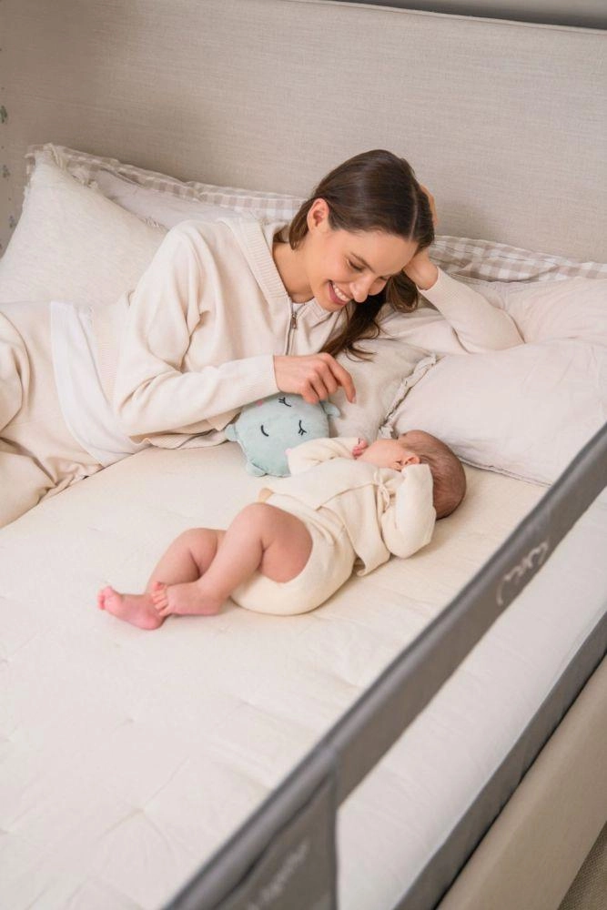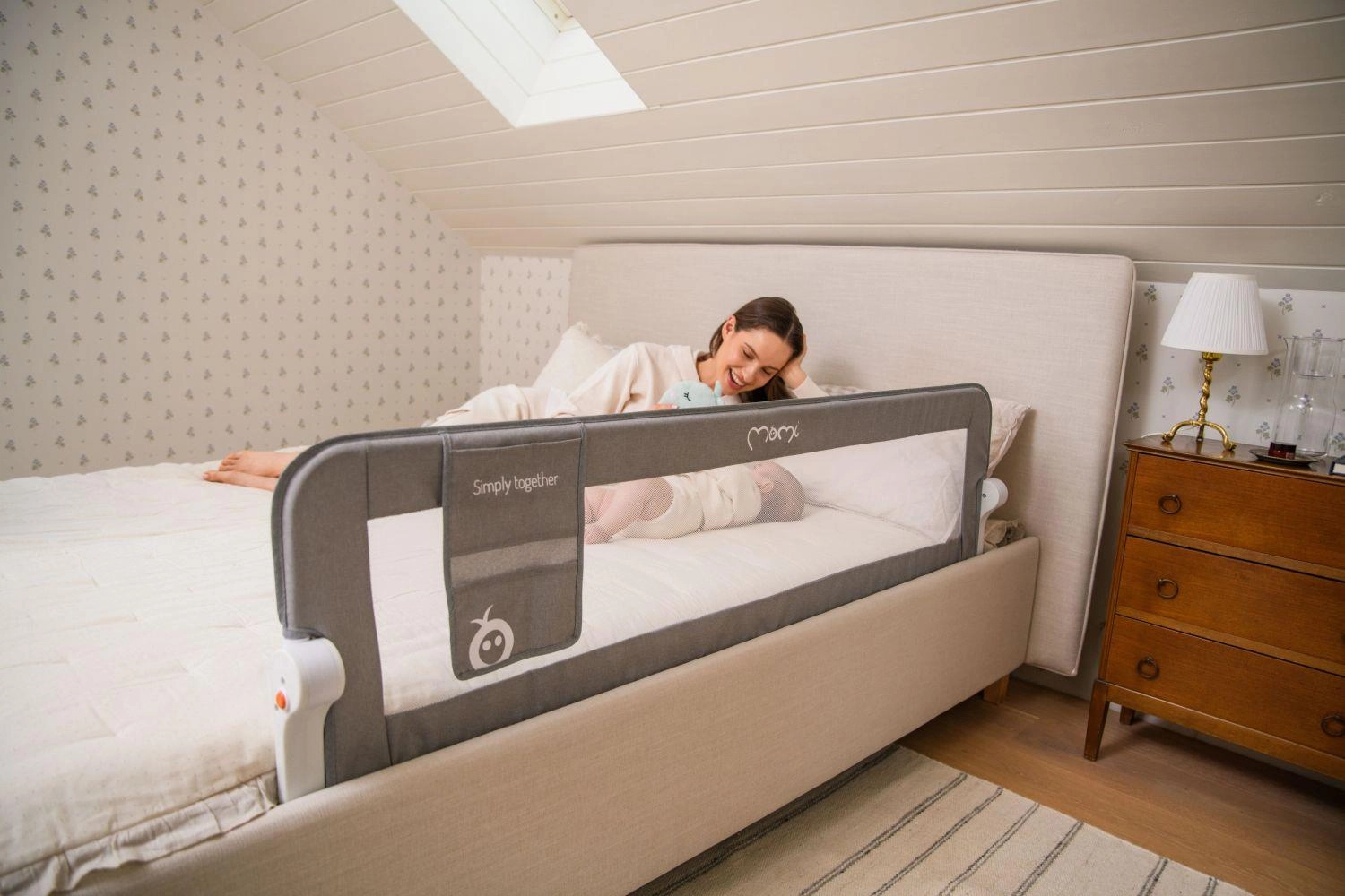 Het MoMi LEXI XL PLUS bedhek is een betrouwbare hulp voor ouders en kinderen – geschikt voor samen slapen bij de ouders én voor een zelfstandig kinderbed. De constructie met zachte bekleding en een groot paneel van ademend mesh biedt veiligheid en tegelijk uitstekend zicht op je kind. Het veiligheidsvergrendelingsmechanisme voorkomt ongewenst inklappen tijdens de slaap.