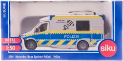 Gedetailleerd model van de politiewagen Mercedes-Benz Sprinter van het merk SIKU in schaal 1:50, met een combinatie van metaal en kunststof voor duurzaamheid en lange levensduur. Voorzien van openende deuren, een draaibare satellietantenne en authentieke politie-uitvoering met opschrift “Polizei”. Ideaal voor verzamelaars en kinderen vanaf 3 jaar.