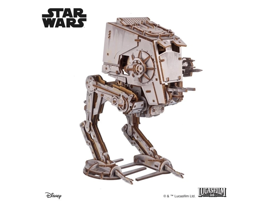 Bouw de iconische STAR WARS AT-ST-walker als een precieus 3D houten model van Ugears. De puzzel biedt een opwindbare mechanische aandrijving, een draaibare cockpit, bewegende blasters en granaatwerper en openende luiken. Dankzij metalen elementen voor stabiliteit kan hij tot 80 cm lopen, zonder lijm of gereedschap.
