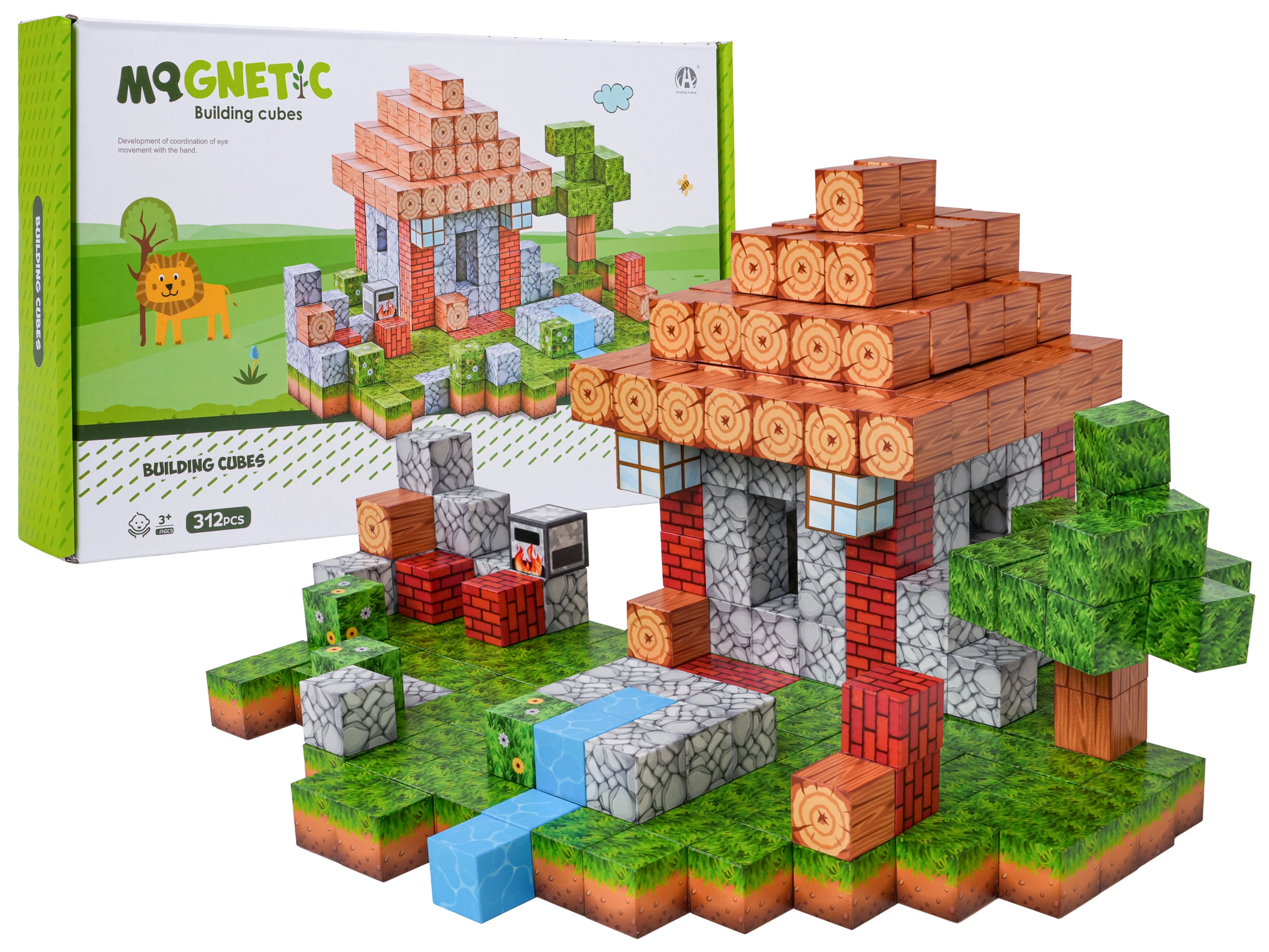 Deze uitgebreide set magnetische blokjes bevat 312 onderdelen met realistische oppervlaktestructuren zoals hout, steen, gras en water. Kinderen maken eenvoudig huisjes, bomen, beekjes en complete pixelachtige landschappen, en kunnen alles op elk moment weer ombouwen. Sterke neodymiummagneten houden de elementen stevig bij elkaar, waardoor de constructies stabiel en veilig zijn.