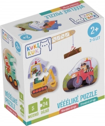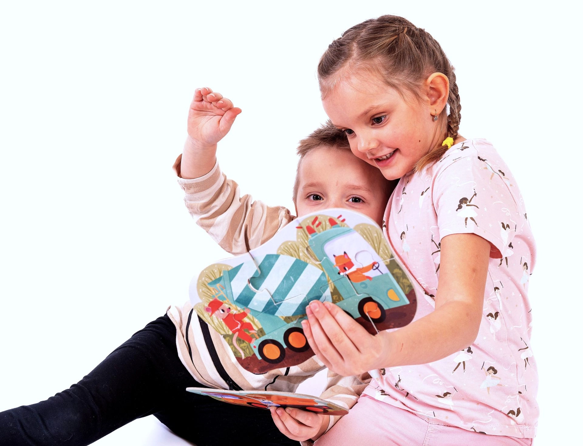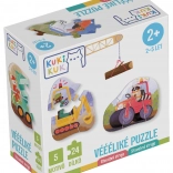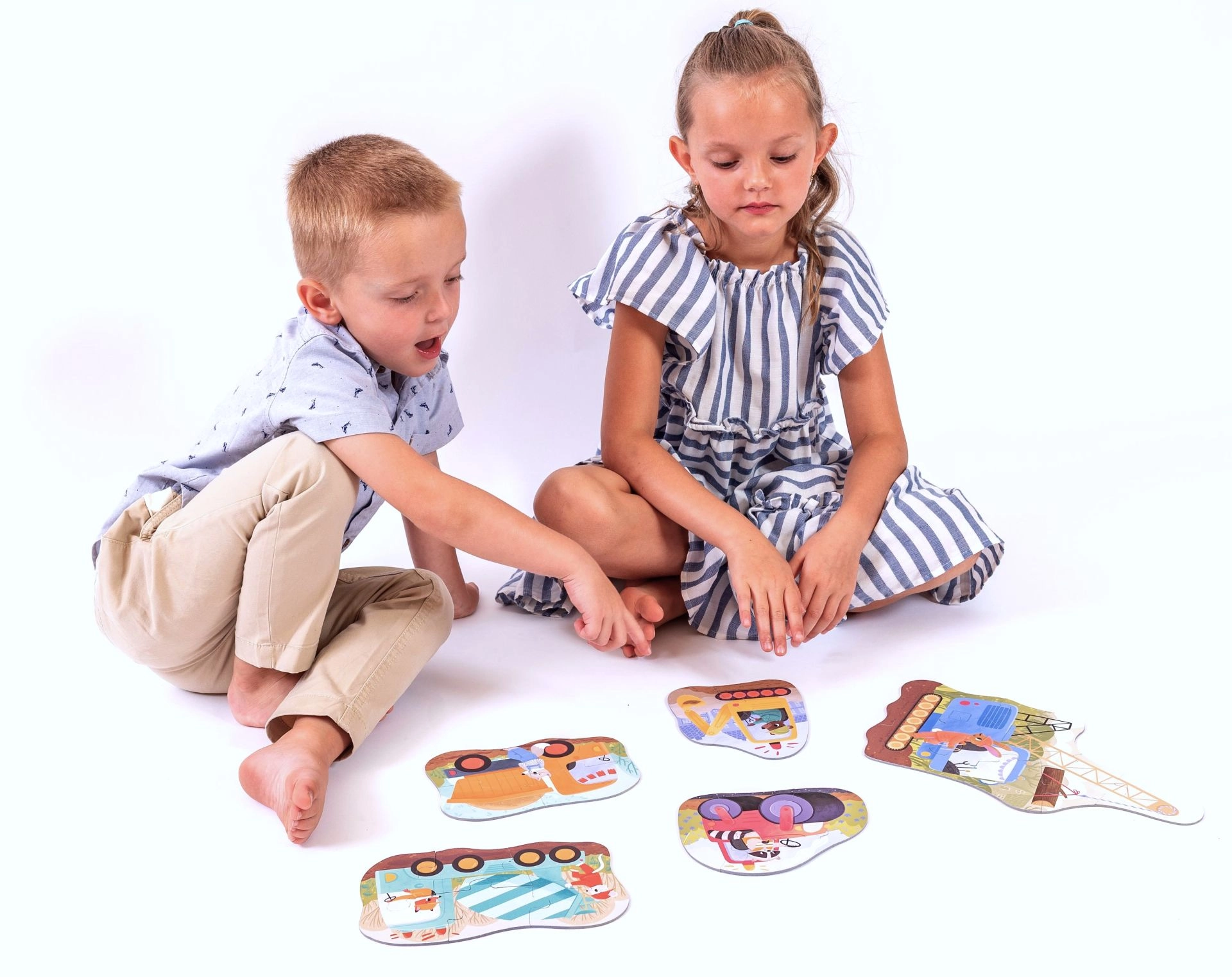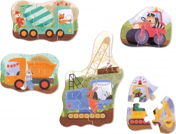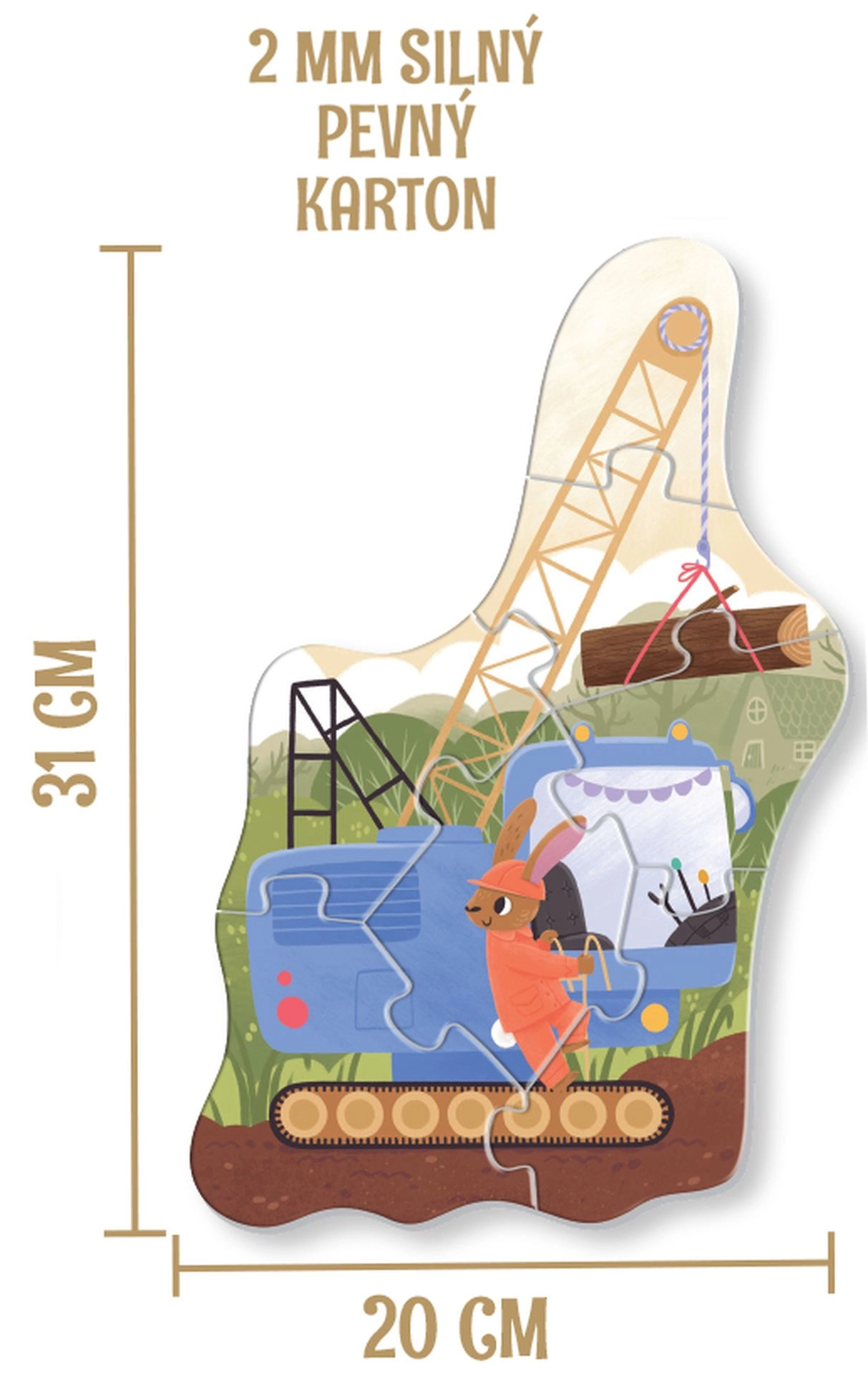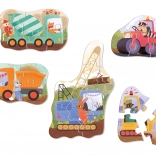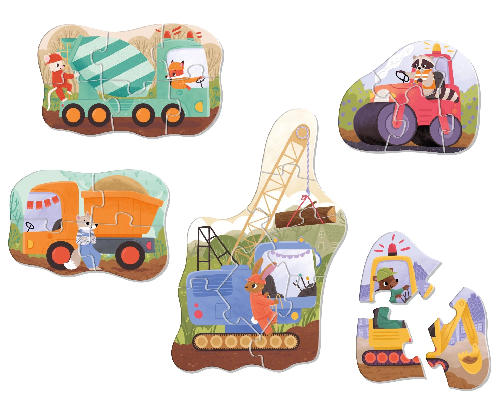 Ontdek speels puzzelen met bouwmachines – van eenvoudige tweedelige tot grotere zevendelige puzzels met een formaat van 31 × 20 cm. Deze set is ideaal voor kleine fans van graafmachines, betonmolens en kranen. De stukken zijn robust, 2 mm dik en makkelijk vast te pakken, zodat kinderen beter kunnen hanteren en sneller plezier in succes ervaren.