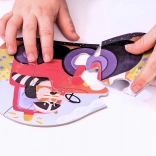 Elk motief heeft een andere kleur op de achterzijde, wat het sorteren vergemakkelijkt en de moeilijkheid stapsgewijs verhoogt. In de verpakking zitten ook tips voor ouders met ideeën voor spelletjes, tijdswedstrijden of knutselen naar voorbeeld. De puzzels zijn gemaakt van FSC-karton zonder plastic en zijn ontstaan in samenwerking met pedagogen.
