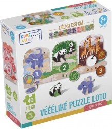 Ontdek een slimme spelactiviteit die puzzels, logisch sorteren en eerste rekenvaardigheden combineert. Kinderen leggen 10 dierenverblijven en koppelen fiches met cijfers, pootafdrukken en voedsel. Extra grote stukken van stevig karton liggen goed in kleine handjes en stimuleren fijne motoriek, visuele waarneming, taal en logisch denken. Gemaakt in Tsjechië, geïnspireerd door montessoriprincipes.