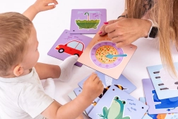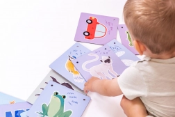 Het hanteren van de stevige kaarten ondersteunt de greep, oog-handcoördinatie en concentratie tijdens het gezamenlijke spel van ouder en kind.