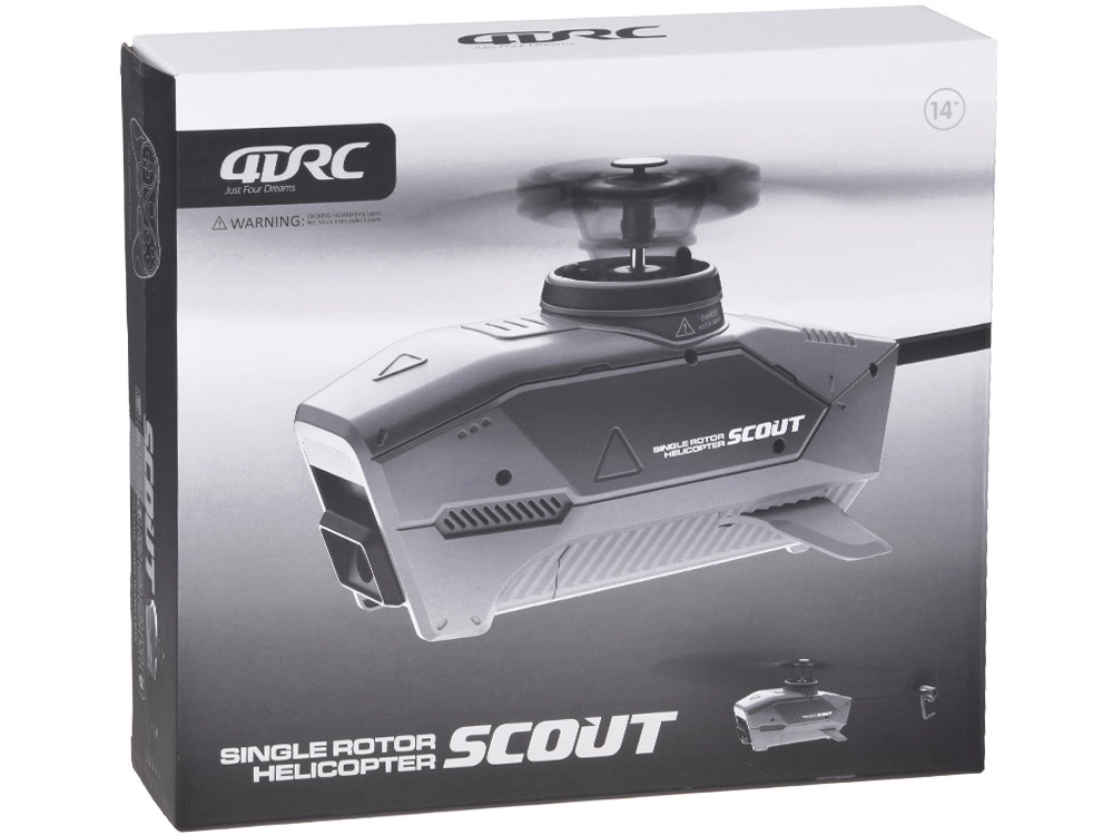 De lichte en robuuste RC-helikopter SCOUT verrast met stabiele vlucht en eenvoudige bediening. Dankzij twee hoofdrotoren, een nauwkeurige afstandsbediening en USB-opladen is hij ideaal voor de eerste vluchten en leuk voor meer gevorderde piloten. In de verpakking vind je reservebladen, een bedrade USB-kabel en een telefoonhouder.
